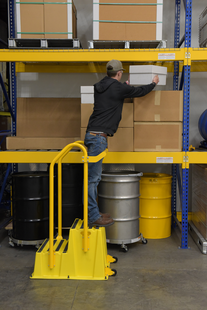 Polyethylene Nestable with Hand and Back Rails Casters 2 Step 500 Lb. Capacity Yellow