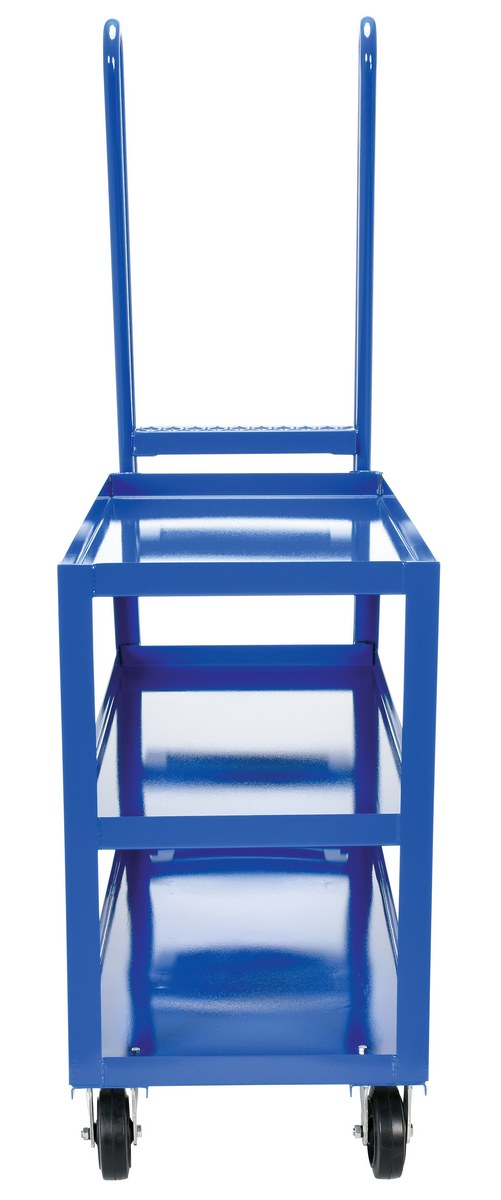 Steel High Duty Cart with Rubber On Steel Casters 56-1/8 In. x 21-7/8 In. x 75-7/16 In. 1,000 Lb. Capacity BlueThis oversized hi-duty stock picker truck is perfect for large jobs. Ideal for oversized cartons, boxes, parts, and supplies. A spring loaded steel ladder for sure, safe climbing, and loading. Steps have non-skid footing with self-cleaning surface. This stock picker truck has three (3) shelves. Built of durable steel construction. Unit is powder coated a blue finish.