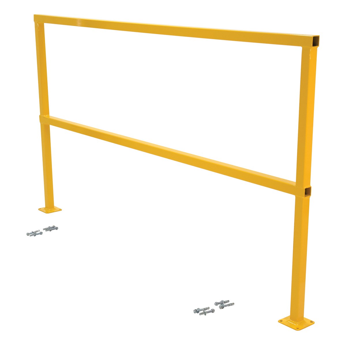 Steel square safety Handrail provides an economical way to protect people and machinery. Applications include loading docks, floor openings, walkways, and mezzanines. Highly visible safety yellow powder coat finish, hardware included.