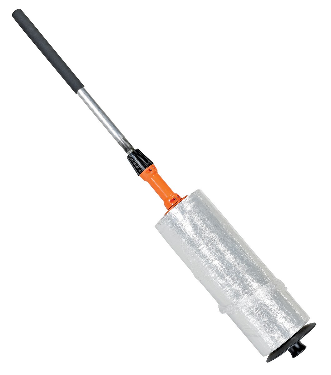 Plastic/Steel Ergonomic Telescopic Handle Stretch Wrapper Black/OrangeErgonomic way to hand wrap pallets without constantly bending at waist. Telescoping handle to get to those hard to reach places. Construction is lightweight for continuous use throughout the day.