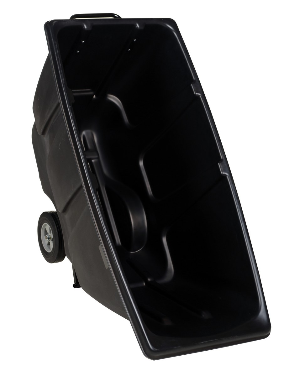 Durable plastic construction allows for collecting waste from multiple bins at a collective time. Great for warehouses, fairs, ball parks, schools, etc. Strong, one-piece molded polyethylene body with steel base tip support and a balanced design to allow for simple dumping by one person. Easily portable on 2 large rubber wheels and two swivel wheels. Not for use with fork trucks. Black color design.