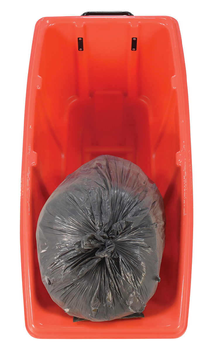 Durable plastic construction allows for collecting waste from multiple bins at a collective time. Great for warehouses, fairs, ball parks, schools, etc. Strong, one-piece molded polyethylene body with steel base tip support and a balanced design to allow for simple dumping by one person. Easily portable on 2 large rubber wheels and two swivel wheels. Not for use with fork trucks. Red color design.