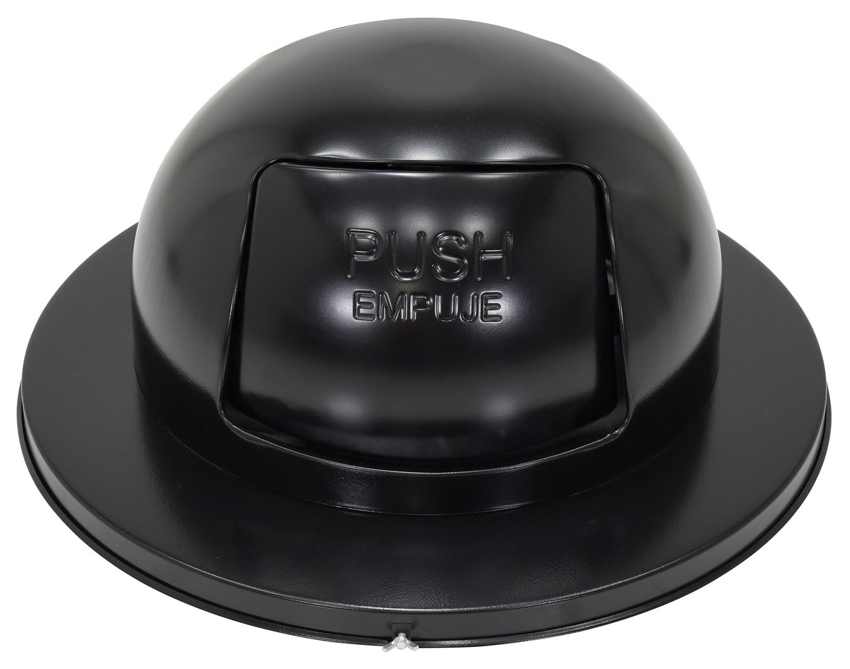 Convert empty drums into waste recycling, general or disposal containers with a waste disposal top. Spring-loaded door closes automatically to prevent bugs from entering. Lid has an outside diameter of 23-1/2” and a dual door design. Powder-coat finish minimizes scratches and abrasions.