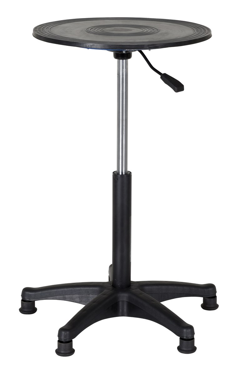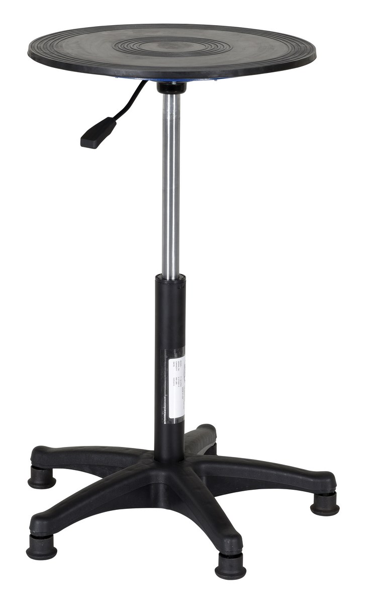 The heavy-duty manual turntable maximizes workspace and allows workers to rotate an item from a single position. Bench top turntables allow workers to stay in one position and rotate items for access from all sides. No need to walk around the table to access areas out of view. Easy and smooth bearing motion. Used in hundreds of applications; displays, paint spraying, assembly units, repairs, etc. The rugged steel construction has an easy, smooth rotation that won't jostle delicate parts. This unit features a gas cylinder up and down mechanism (similar design as office chairs).