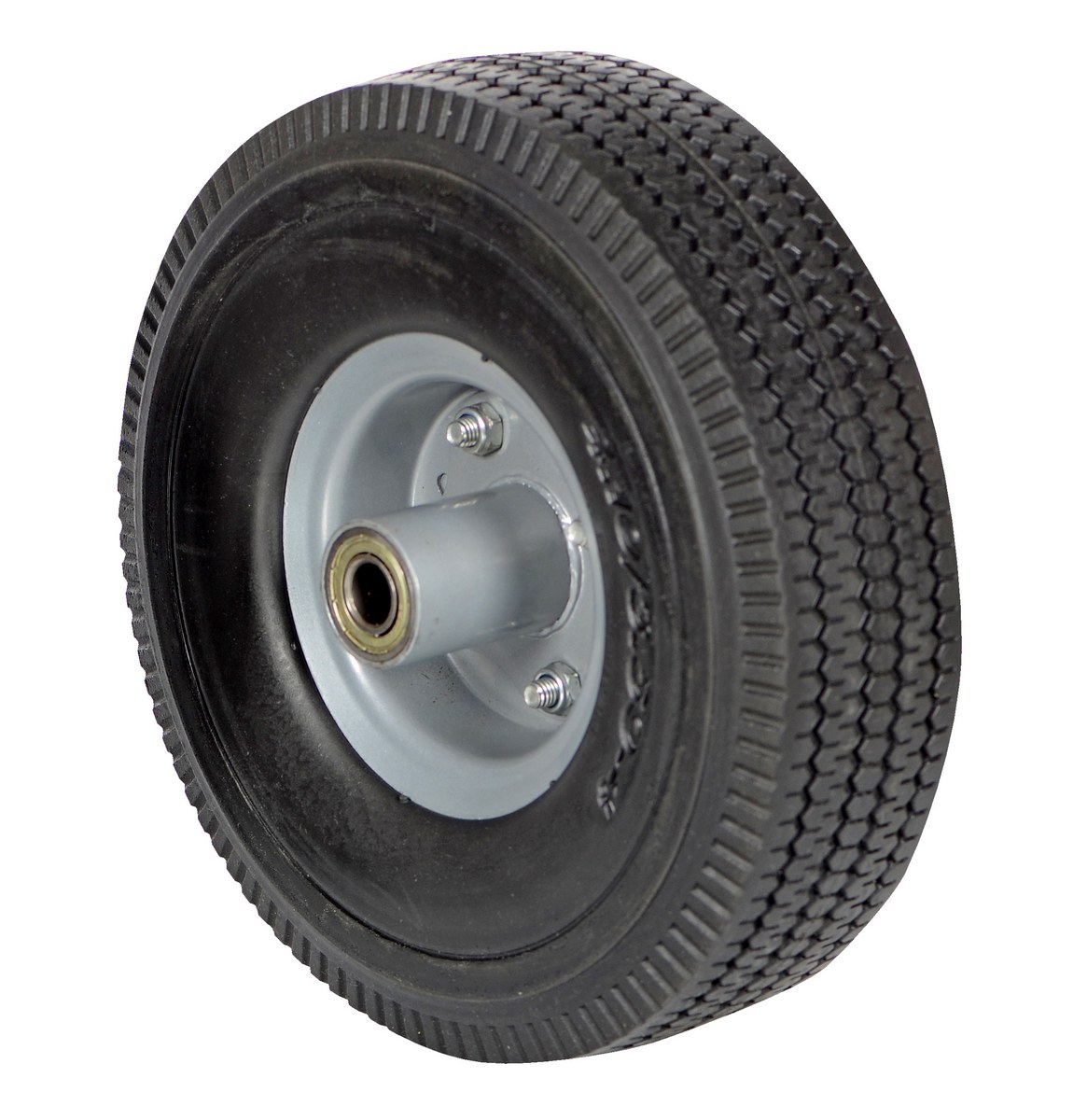 This solid urethane foam wheel will never run flat. Offset steel hub which is great for use on hand trucks. Sawtooth tread pattern.