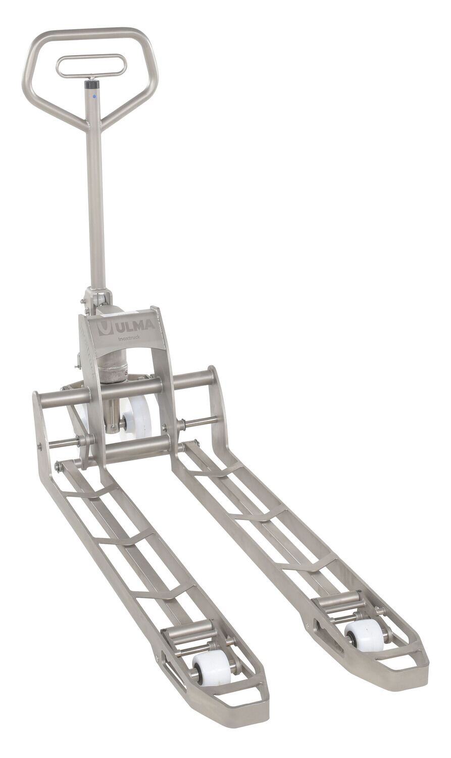 304L Stainless Steel Hydraulic Hand Pump Pallet Jack 20 in. X 45 in. 3,300 Lb. Capacity SilverThe Stainless Steel Hydraulic hand pump pallet jack works well food handling and other hygienic environments. The stainless steel construction including hydraulic cylinders and piston, is not only strong, but also simple to clean. With its open fork design,the jack can be thoroughly detailed before/after transferring products. The height of the ergonomically friendly handle diminishes slouching and can be rotated for simple maneuvering of products down narrow corridors and pathways. All bearings are sealed for waterproof protection during both use and cleaning.
