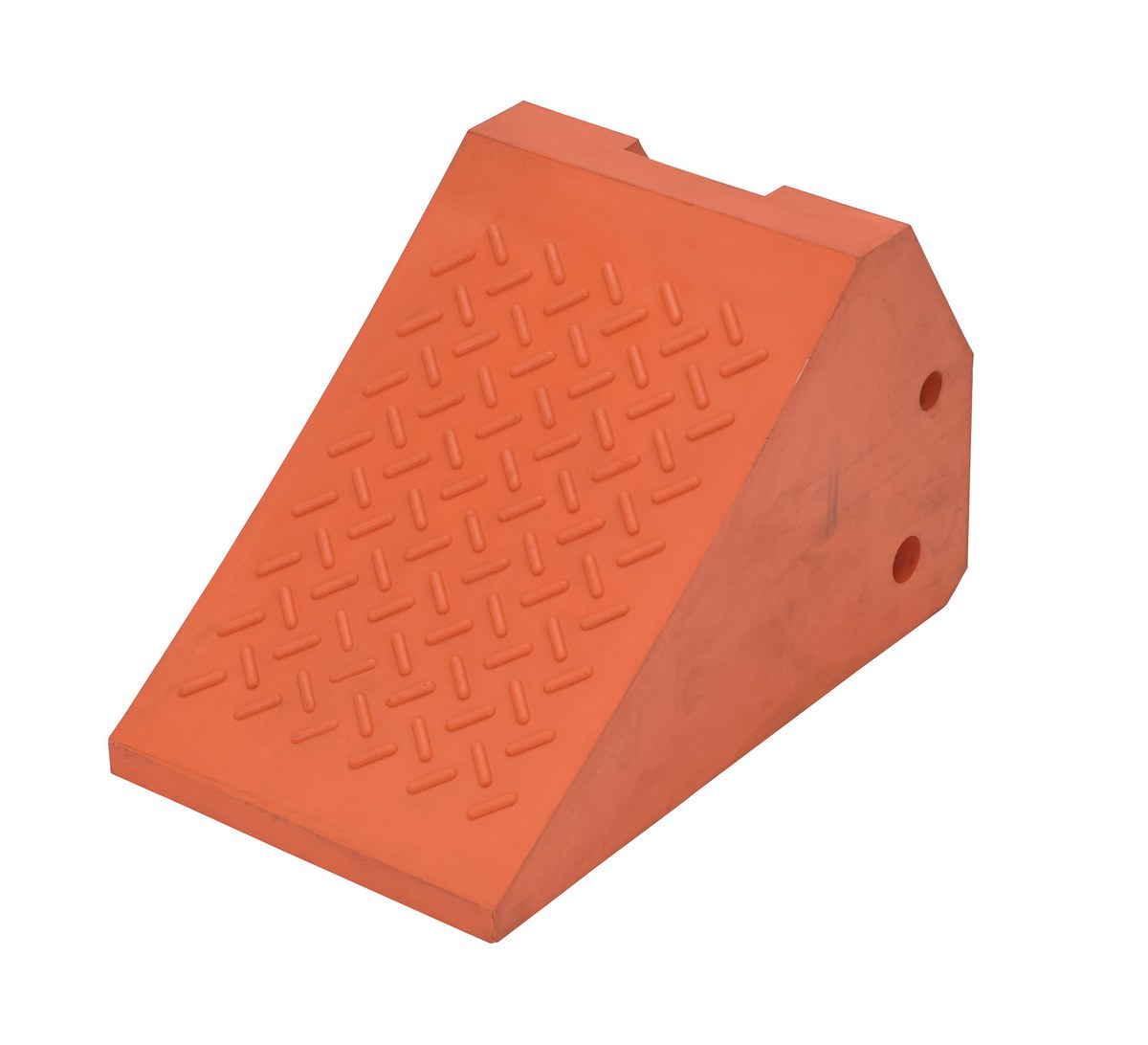 Urethane Super Wheel Chock 24 In. x 14 In. x 14 In. 80 Ton Capacity OrangeThe urethane Wheel Chock is great for maintenance and repair facilities. The unit is constructed of molded urethane for a lightweight, yet durable, design. The chock is brightly colored for clear visibility both indoors and out.