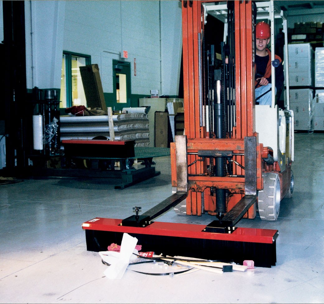 The Fork Truck brush sweeper is ideal for interior and exterior commercial sweeping. Great for cleanup applications; docks, warehouses, and parking lots. Lightweight aluminum body with polypropylene bristles. Red powder coat finish. Attach unit by sliding forks into pockets and securing with locking screws.